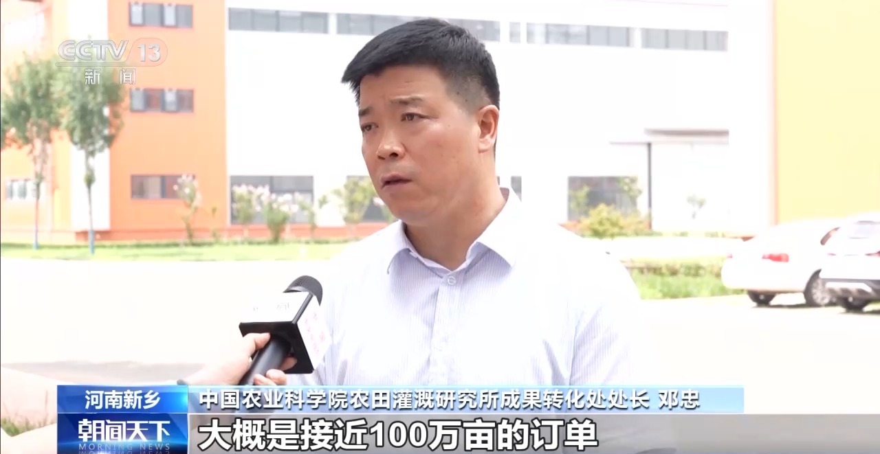 中國農業科學院農田灌溉研究所成果轉化處處長 鄧忠:我們又接手了大概100萬畝的訂單,結合各個縣不同的地域、水源情況、作物種植類型、種植結構,制定標準化的設計方案?,F在這個市場機遇確實是非常大。